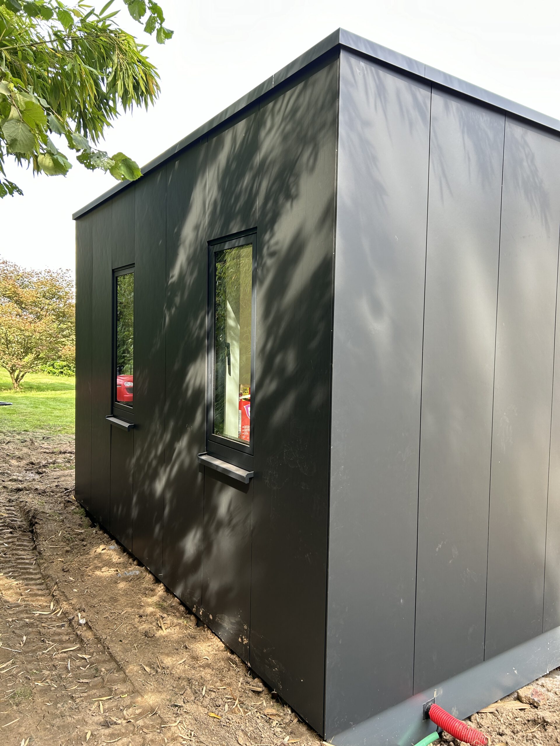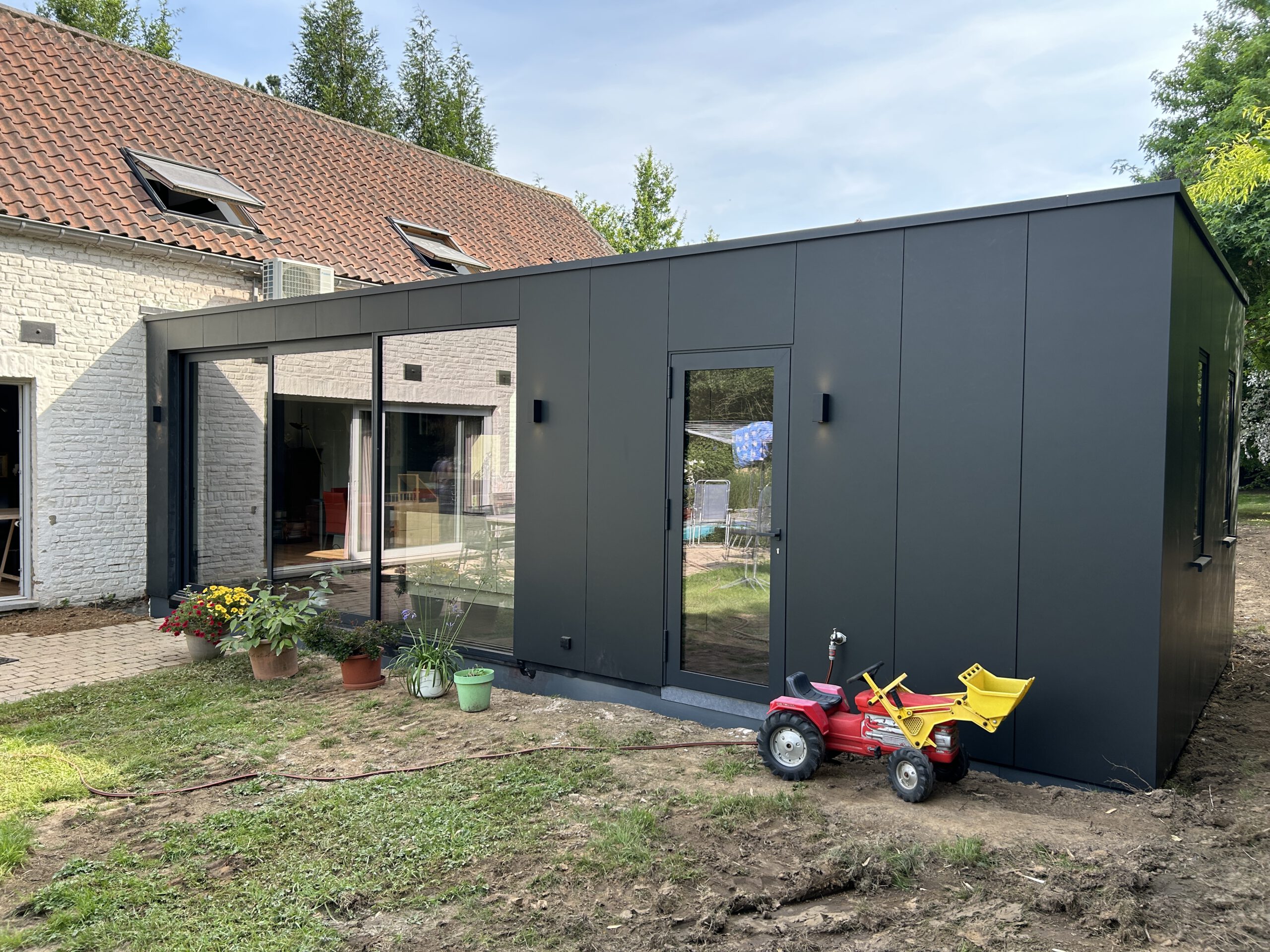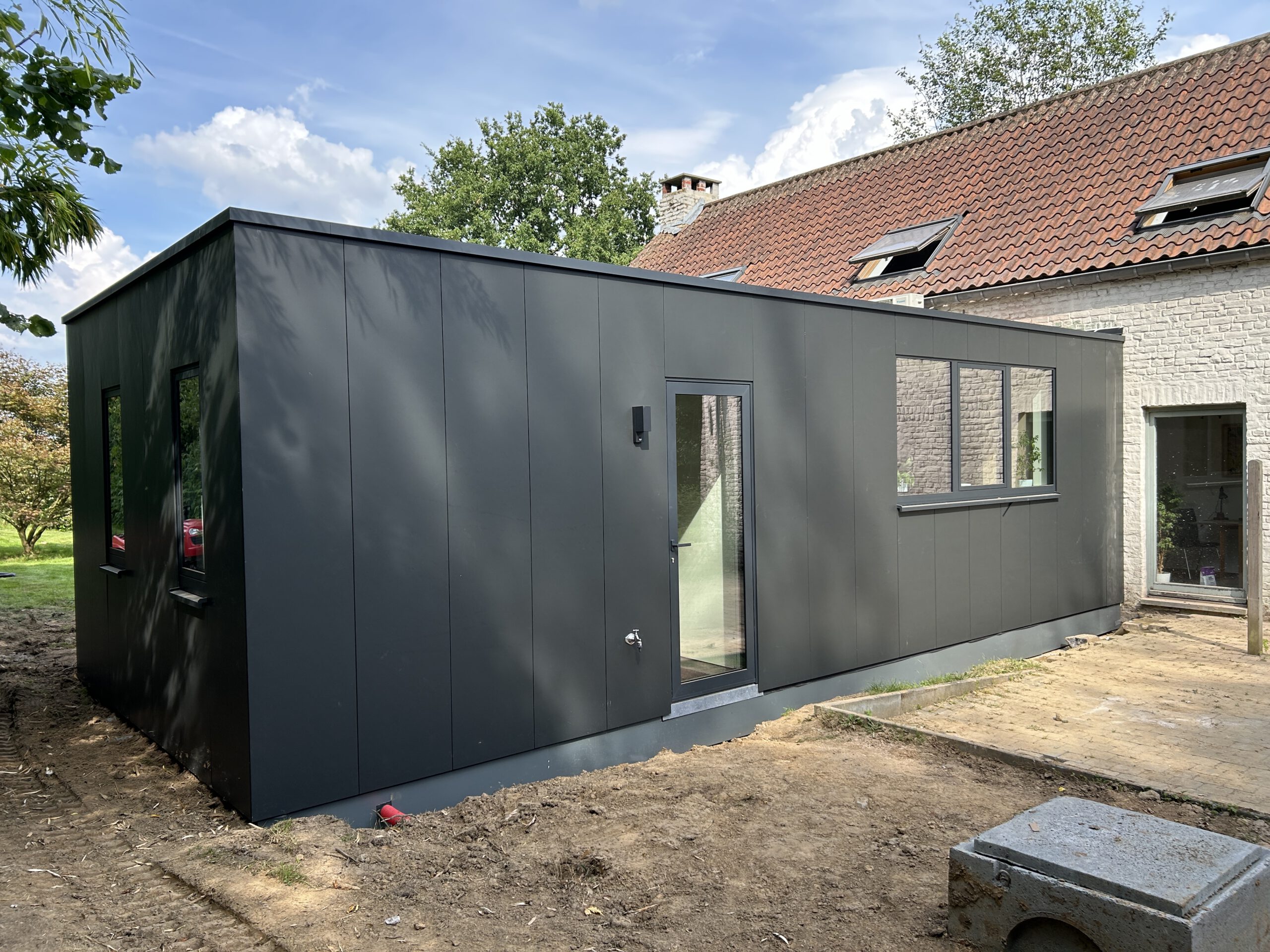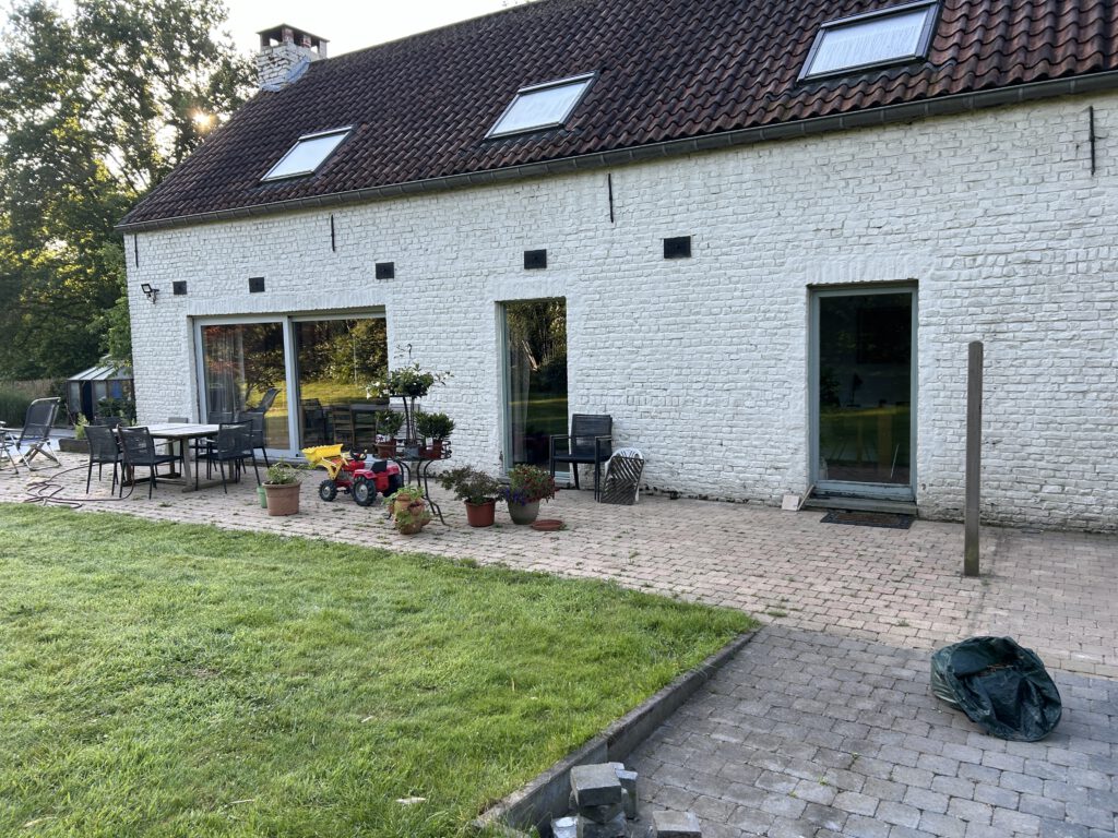 À Genval, nous avons construit un MOXX de 40 m² qui sert de cuisine, buanderie, sas et toilettes. En une semaine, de la terrasse à la nouvelle cuisine…